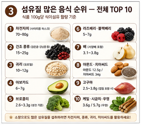 섬유질 많은 음식 순위 — 전체 TOP 10